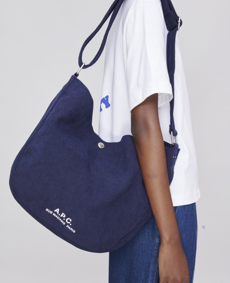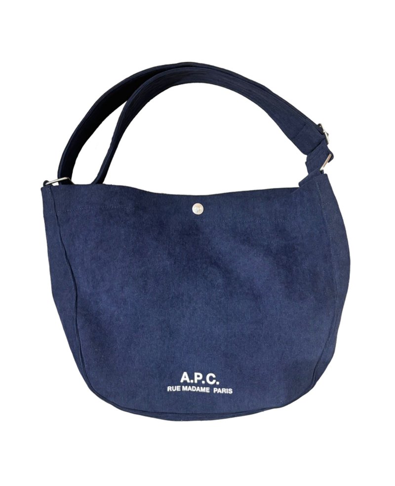 - "A.P.C. Rue Madame Paris" logo printed on the front of the bag