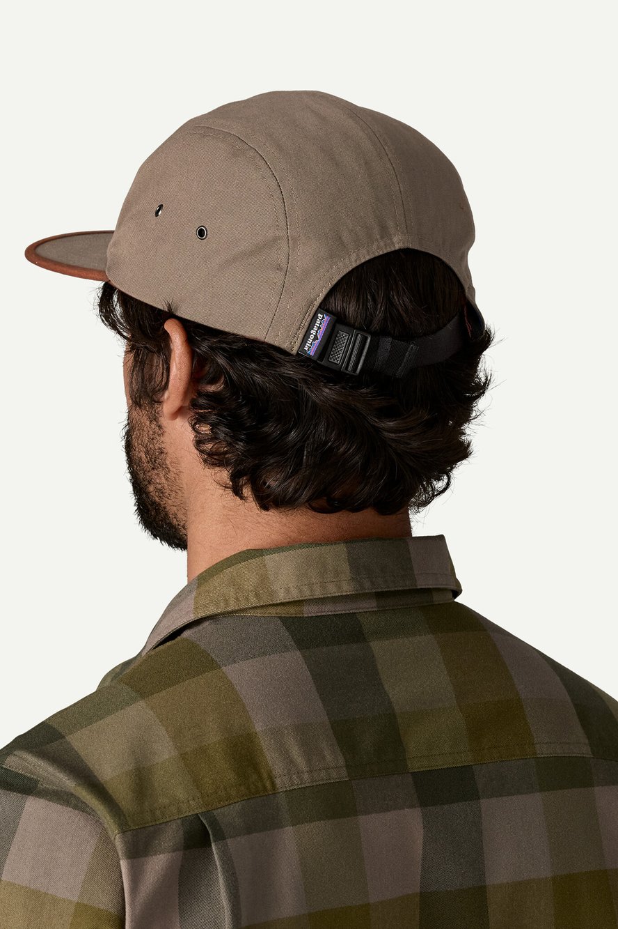 - Five-panel hat with a mid-crown fit