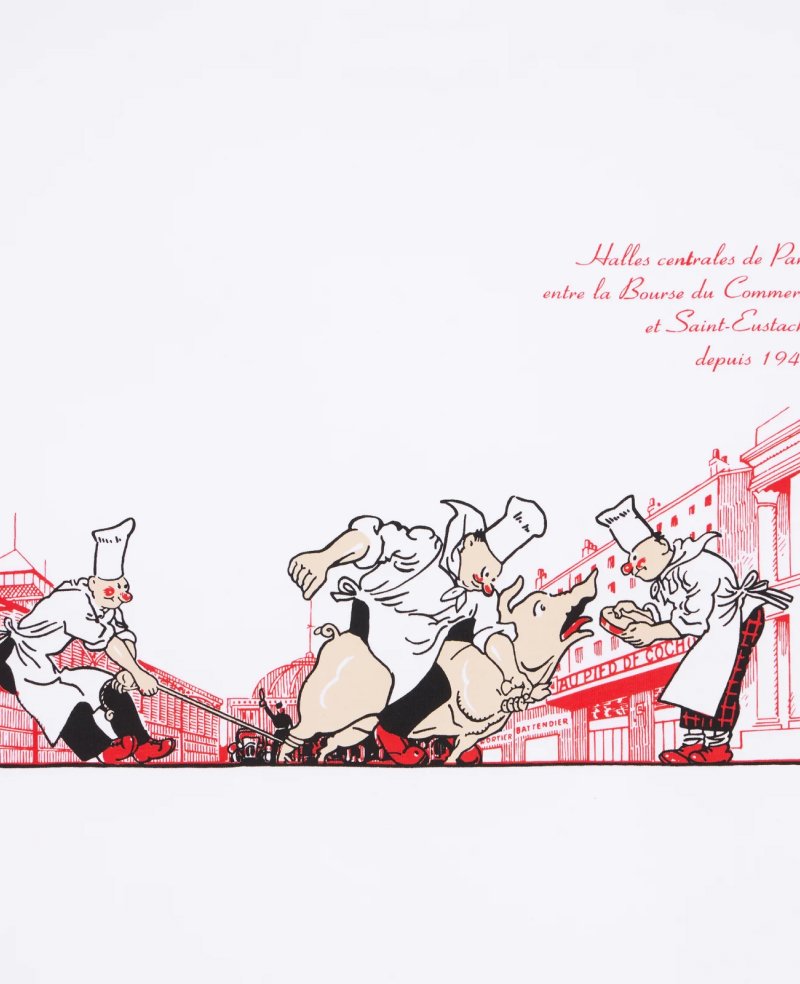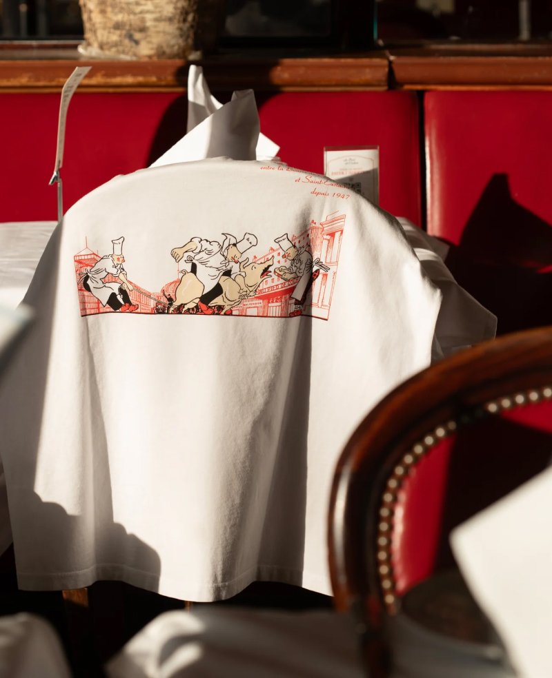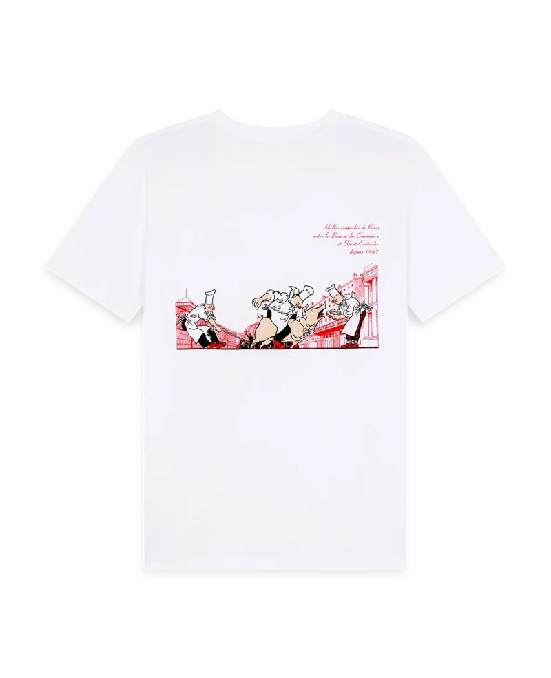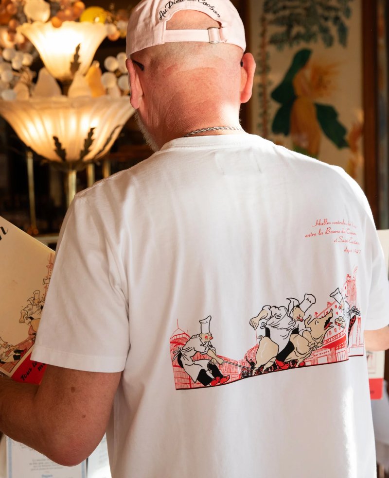 - This t-shirt features the historic visual of the Les Halles district, present on the menu for over 70 years